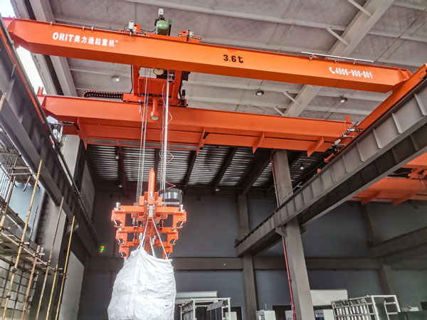 在黨101周年生日慶祝之際,奧力通起重機完成“三袋聯吊”智能噸袋起重機交付,該產品一次可吊運三袋噸袋,自動脫鉤,自動裝車;“三袋聯吊”世界首創,生產效率提升300%,節約人工70%;廣泛應用于食品、化工、礦業、冶煉等粉末狀或顆粒狀物料的噸袋自動裝卸。