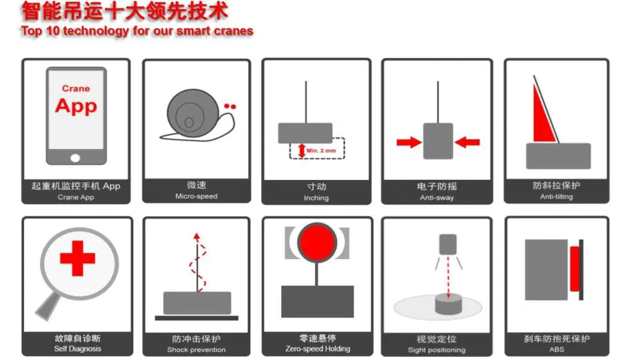 奧力通智能AI技術(shù),包括自動(dòng)定位、故障自診斷、防沖擊保護(hù)、防斜拉保護(hù)、防抱死保護(hù)、電子防搖、自動(dòng)糾偏、自動(dòng)對(duì)中、區(qū)域保護(hù)、寸動(dòng)、微速、【掌上起重】手機(jī)APP、遠(yuǎn)程監(jiān)控、HMI等,讓起重機(jī)更安全、更智能。