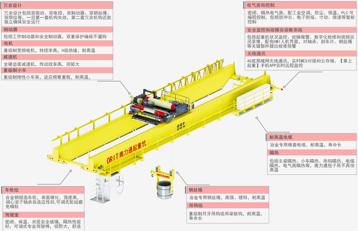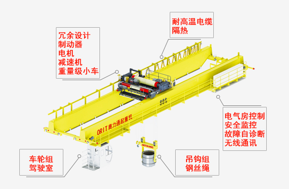 鋼絲繩 冶金專用鋼絲繩,高強(qiáng)、鍍鋅,耐高溫 吊鉤組 重級制月牙吊鉤或吊梁板鉤,耐高溫,壽命長