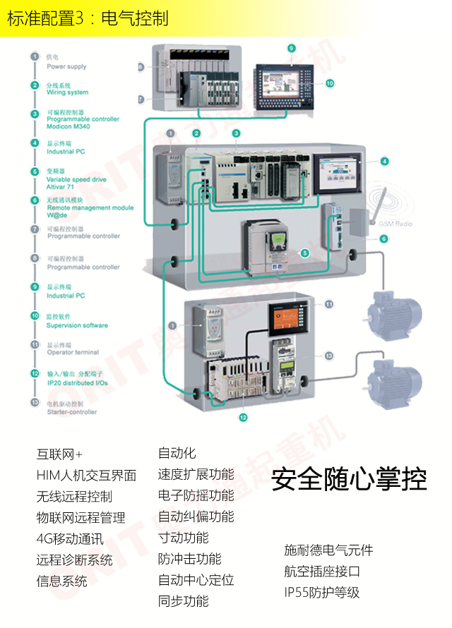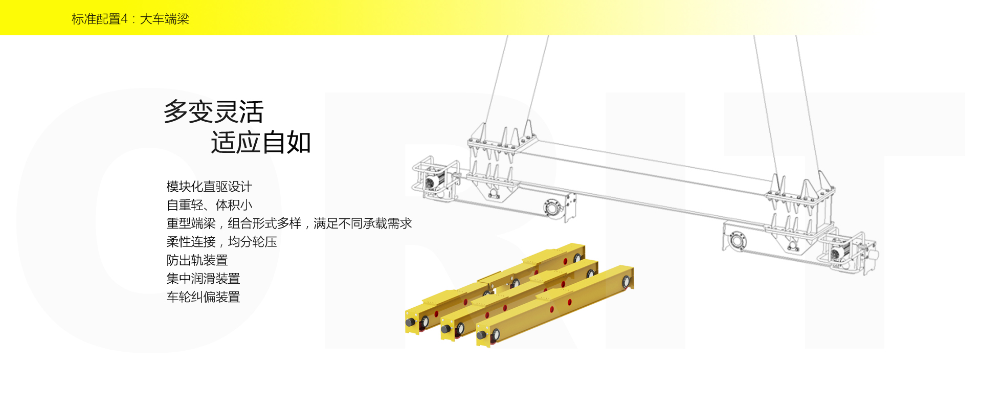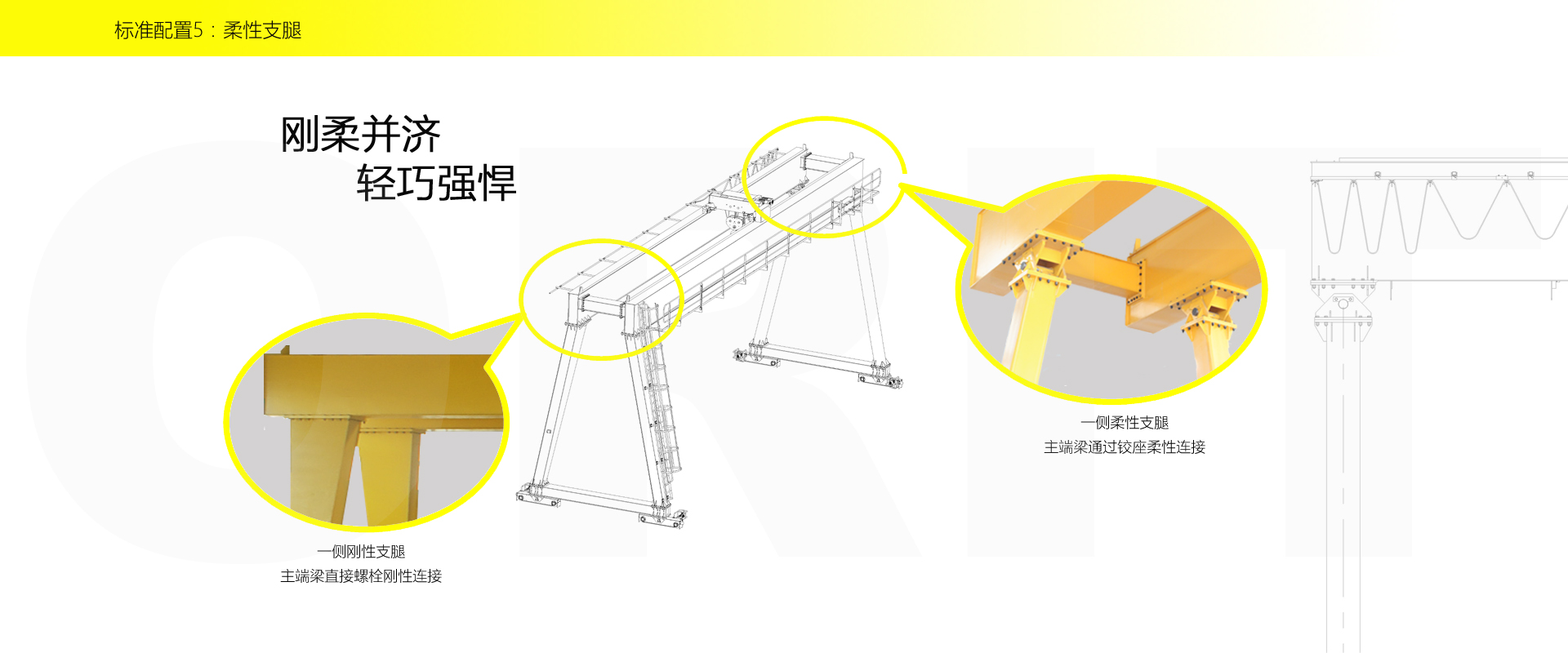 產品名稱:雙梁門式起重機 剛柔并濟 小體積 大能耐 優化設計,結構緊湊 柔性支腿,有效釋放應力,延遲結構壽命 柔性支腿,體積小,節省空間 變頻控制,運行平穩 實時安全監控,確保吊運安全 標準化配置,讓性能無比穩定 配置K系起升,適用于80t以下額定載荷 無牛腿車間搬運的最佳解決方案 配置CM智能卷揚起升,適用于500t以下額定載荷起吊 標準配置1-1:起升機構 SWL(t) HOL(m) 0.8t-80t Max.90m 低凈空設計 柔性驅動,內應力小,傳動效率高 柔性鉸接小車架 重級制電機,接電持續率60%ED 行走變頻無極調速,運行平穩 自調試電磁盤式制動器,可靠,防塵 2160N/mm2 高強度鍍鋅鋼絲繩,免維護 全周型導繩器,防松繩 全系標配安全監控系統 標準配置1-2:起升機構 顛覆傳統,自成一體 SWL(t) HOL(m) 5-500t Max.160m 歐式智能卷揚 高度矮,自重輕,節約建筑成本 重級制,滿足持續重載作業 柔性驅動,內應力小,傳動效率高 免維護 適配各種吊具 智能化:寸動/微動/電子防搖 故障自診斷系統及HMI 標準配置2:三合一驅動 靜音科技,靜享搬運 結構緊湊,鋁合金殼體,密封 變頻電機+硬齒面減速箱+盤式制動器 三合一集成化設計 全變頻調速 最高轉速4800 r/min 防護等級IP55 半油脂潤滑,免維護 靜音科技,靜享搬運 標準配置3:電控系統 安全隨心掌控 互聯網+ HIM人機交互界面 無線遠程控制 物聯網遠程管理 4G移動通訊 遠程診斷系統 信息系統 自動化 速度擴展功能 電子防搖功能 自動糾偏功能 寸動功能 防沖擊功能 自動中心定位 同步功能 智能安全監控器 計算起升機構剩余安全工作時間 累計起升工作時間 累計超載次數 累計起升電機啟動次數 起升電機過熱保護及報警 剎車片厚度報警 ... ... 遠程通訊 施耐德電氣元件 航空插座接口 IP55防護等級 標準配置4:端梁 多變靈活,適應自如 模塊化直驅設計 自重輕、體積小 重型端梁,組合形式多樣,滿足不同承載需求 柔性連接,均分輪壓 防出軌裝置 集中潤滑裝置 車輪糾偏裝置 柔性支腿 剛柔并濟,輕巧強悍 一側剛性支腿,主端梁直接螺栓剛性連接 一側柔性支腿,主端梁通過鉸座柔性連接