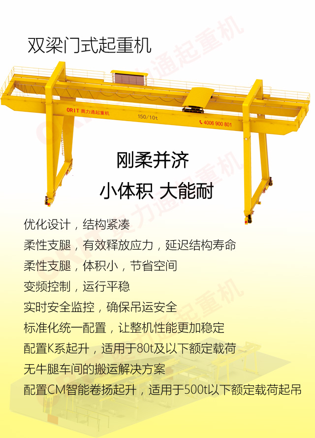奧力通集起重機研發、制造、銷售、安裝、服務于一體,公司主要生產起重機、橋式起重機、門式起重機、雙梁起重機、單梁起重機、歐式雙梁橋式起重機、歐式單梁橋式起重機、歐式懸掛起重機、多支點懸掛起重機、歐式雙梁門式起重機、歐式單梁門式起重機、歐式半門吊、歐式壁行吊、歐式懸臂吊、歐式輕型起重機等通用標準起重機,以及全自動智能化起重機、冶金類起重機、防爆類起重機、航空專用起重機、核電站專用起重機、造紙專用起重機、電廠起重機等特殊專用起重機。